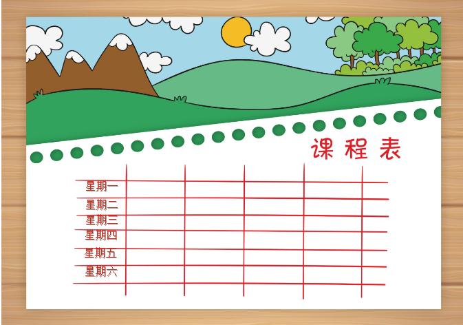W大師提供個性化綠色大樹小清新課程表word模板下載,模板編號為10006029,大小為6.34MB,