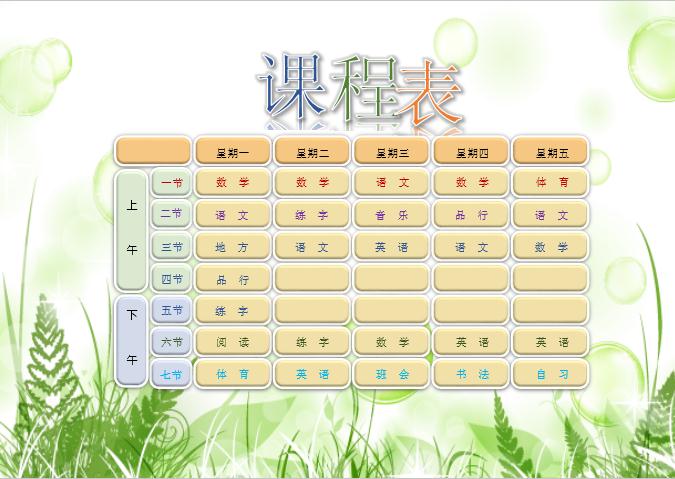 相關(guān)關(guān)鍵詞: 小學(xué)課程表,小學(xué)課程表模板