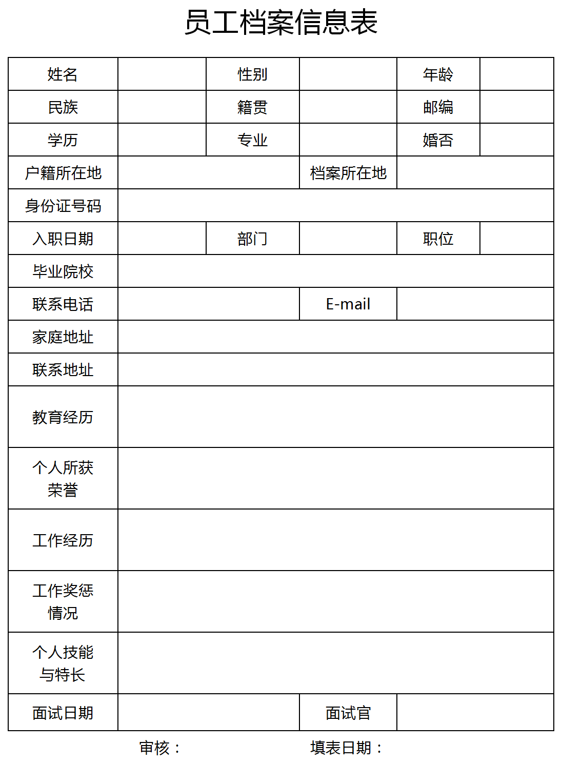 W大師提供個(gè)性化企業(yè)員工檔案登記表花名冊(cè)下載,模板編號(hào)為10033944,大小為10.2KB,